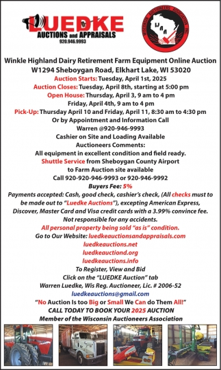 Ads for Luedke Auction and Appraisals in Plymouth, WI