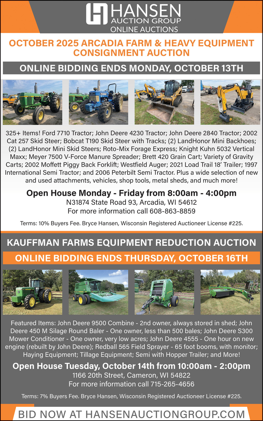 Oct 08, 2025. Hansen Auction Group Real Estate Ads from The Country Today