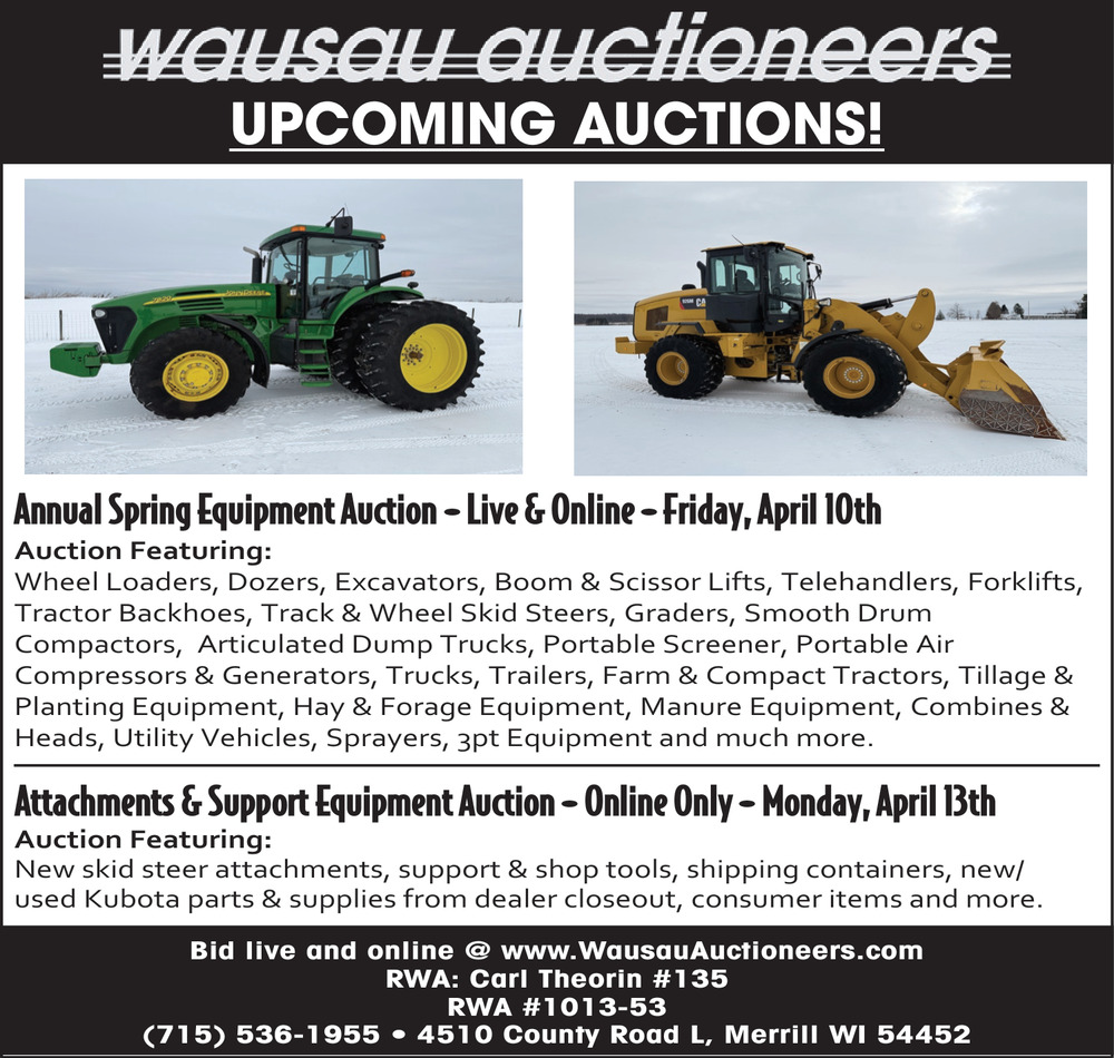 Mar 25, 2026. Wausau Auctioneers Auctions Ads from The Country Today